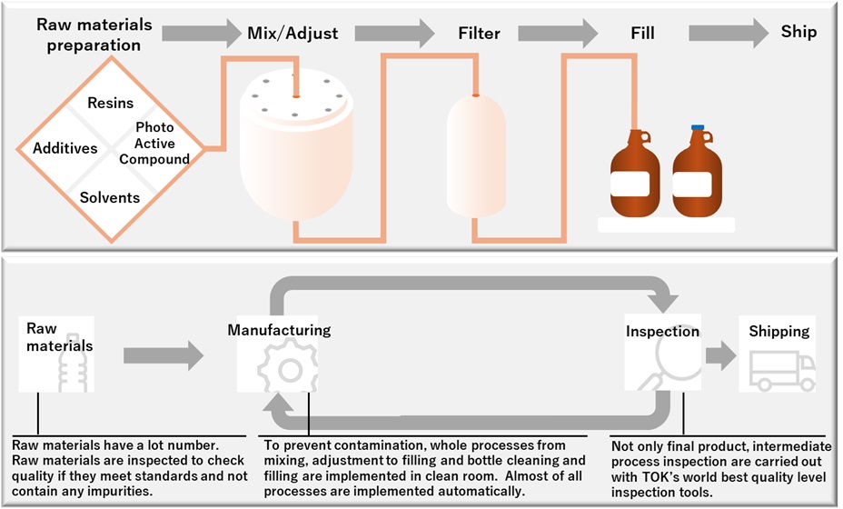 In each of the development, manufacturing, sales, and disposal stages, TOK ensures appropriate chemical management for product safety.
