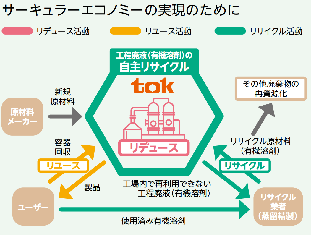 排水処理施設による廃液の自社処理化、分別の推進による廃棄物の有価物化、製造工程の見直しによる廃棄物の発生抑制など、国内外におけるTOKの全製造拠点において、廃棄物を極力削減するための様々な活動を行っています。